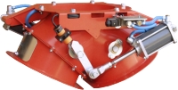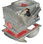 Robuste Verschlüsse und Verteiler in einem kompakten Gerät. Es kann wechselseitig aus einem Waagenbehälter in zwei Mischer restlos entleert werden. Grosse Zugangsöffnungen in den Gehäusen vereinfachen die Reinigung und ermöglichen den Austausch von Verschleissteilen ohne aufwendige Demontage des Gerätes. Zuschlagstoffe